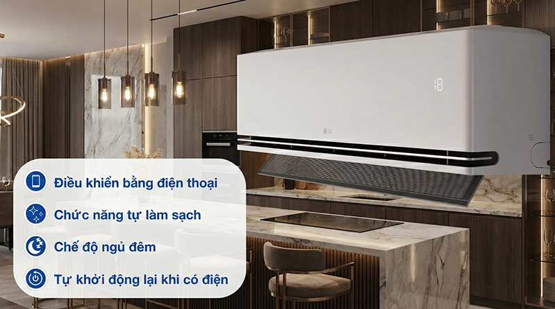 – Tự động làm sạch (Auto Cleaning): Tính năng này tự động làm khô bộ phận trao đổi nhiệt sau khi tắt máy, loại bỏ môi trường ẩm mốc – tác nhân gây mùi hôi và vi khuẩn.